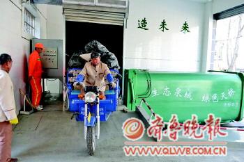| 在天桥区无影山东路垃圾压缩转运站,保洁人员正将垃圾运来进行压缩处理。 本报记者 赵伟 摄 |