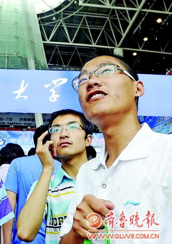 | 6月25日,2012年山东高考招生咨询会上,考生们正在寻找想要咨询的学校。