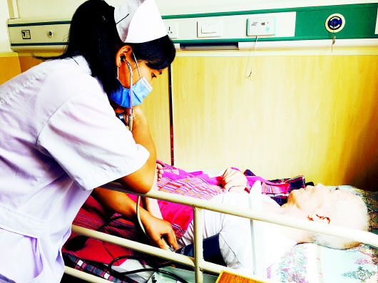 ◥对于失能老人,医护人员每天都要定时测血压。