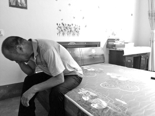 在女儿生前居住的房间,徐玉玉的父亲睹物思情,掩面流泪。 本报记者 高祥 邱明 摄