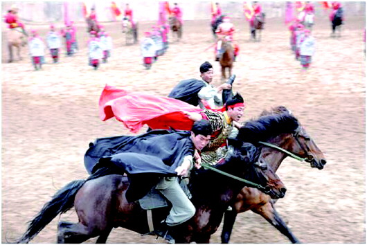 天马岛景区上演山顶的马战——《天马忠魂》。
