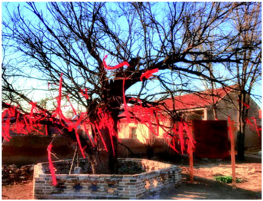 村支书薛大龙谈到,扶贫开发规划出台之后,他们就开始对村里的大槐树周边进行修整,打造成游客祈福景点。“谈到大槐树,我真心感谢我们的村民,尤其是苑氏一族。”薛大龙解释道,千年古槐树一直以来就是村里苑氏一族的“祖产”,他们祖祖辈辈都负责照料和看护大槐树。当村里有了打造祈福景点的想法,村委代表和苑氏一族商量之后,他们无条件将大槐树交由村委安排,并将槐树周围种的棉花,存放的东西清扫干净。每天大槐树下来来往往那么多人,人走后,苑氏家族的一位年过古稀的老奶奶总会将树下清扫干净,两年来从未间断。