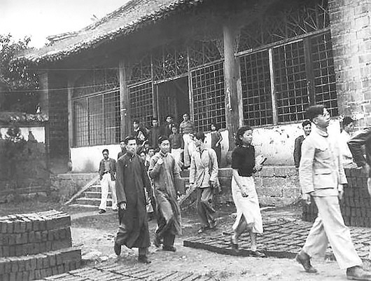 西南联大学生下课走出教室。