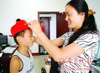 9日,在本报《今日运河》编辑部暑期营销秀报名现场,一位母亲将比赛时要用到的小红帽戴在孩子头上。据主办方介绍,第三届“九龙家电杯”暑期营销秀报名启动以来,选手报名持续火爆,不到一周时间,目前已有80余名小选手加入卖报大军。 本报记者 马辉 摄