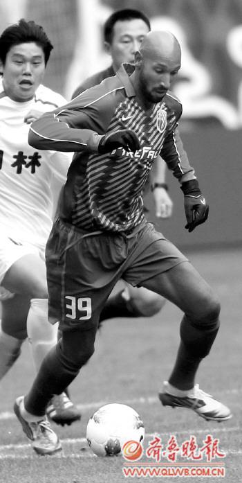 3月3日,上海申花队球员阿内尔卡(前)带球突破。当日,中超球队上海申花与中甲球队上海东亚在上海虹口足球场进行了一场热身义赛,经过90分钟的争夺,双方0:0战平。 新华社记者 凡军 摄