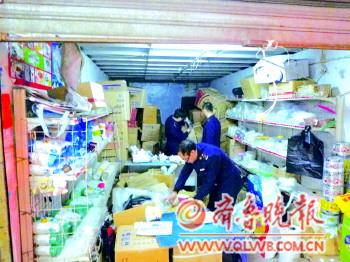 烟台市工商局三站分局小商品工商所近日对辖区食品餐具经营批发业户进行了一次检查,共查处“三无”餐具50多箱,涉及吸管、水杯、饭盒、食品包装袋、勺子、筷子等多个品种。这些餐具多被商家放在编织袋中随意摆放,储存环境很差。 本报通讯员 刘洋 本报记者 秦雪丽 摄