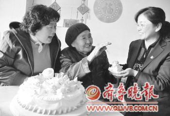 看到居委会工作人员给自己过生日,老人很高兴。21日是王欲娟老人(中)的101周岁生日。上午,向阳街道华茂社区工作人员带着生日蛋糕等慰问品,来到王欲娟老人家中,为老人祝寿。王欲娟老人是华茂社区年龄最大的老寿星,是社区里让大家羡慕的“老宝贝”。 通讯员 苏慧 本报记者 熊戈措 曲彦霖 摄影报道