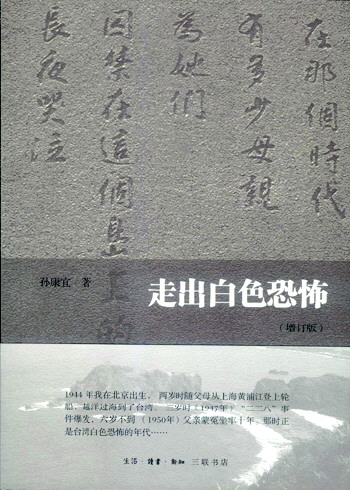 白色恐怖是台湾政治史的一大污点,多年来也是岛上的禁忌话题。1980年代末言禁大开,以往的斑斑血泪浮出地表,成为社会共同追记、反思的宿业。孙康宜也在海外默默写下《走出白色恐怖》,铺开自己一家人在台湾白色恐怖下的伤痛记忆。