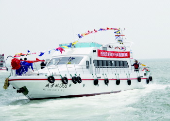 27日上午,威景航001号环刘公岛旅游船首航仪式在刘公岛旅游码头举行。据统计,去年环刘公岛旅游游客达15万人次,预计今年将突破20万人次,原有的环岛旅游船已经无法满足需求。约20天后,威景航002号环刘公岛旅游船也将起航。