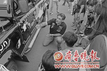 右图:车手给观众介绍行车路线。