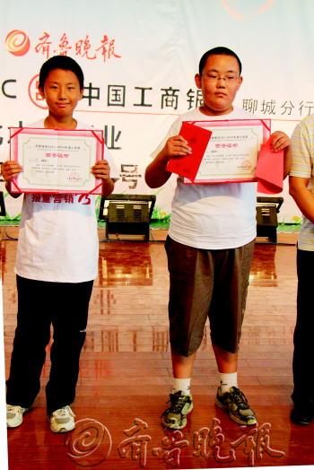 15日上午,2012齐鲁晚报·工行杯报童营销秀颁奖盛典在聊城市实验中学大礼堂隆重举行,204名成绩优异的小报童分获金、银、铜、明星奖和鼓励奖。其中,两名小报童摘得金奖,各获1000元奖金。 本报记者 邹俊美 摄