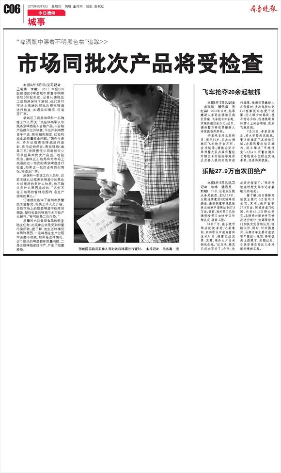 市场同批次产品将受检查