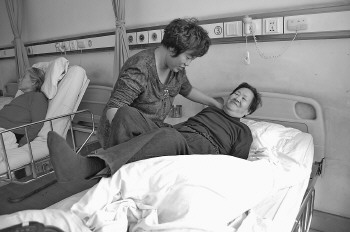 唐晓瑞在照顾病床上的母亲。 本报记者 梁敏 摄