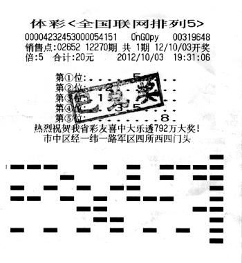 细数列位“排列5”大奖得主,他们的选号绝招可谓是五花八门:有用车牌、门牌号的,有用钞票、彩票序列号的,也有用手机、电话号码的,然而要说浪漫、甜蜜,这些大奖得主都比不上来自济南的彩友蔡先生(化姓),因为正是妻子的一句“我爱你”,他们选了“521”这三个号码,使蔡先生一举揽获“排列5”第12270期大奖50万元。