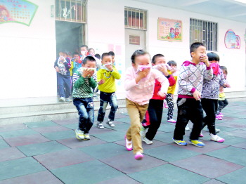11日下午,枣庄市市中区光明路小学幼儿园的小朋友们进行了一场火场逃生自救演练。老师们点燃枯树枝模拟火灾现场场景,此活动的目的在于加强学生们遭遇突发事件时的自救能力。 本报记者 杨霄 本报通讯员 孙雁 摄影报道