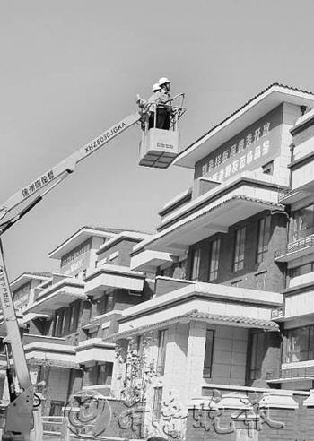 近日,市城管执法支队为提高中心城区户外违法广告清理拆除工作的效率,新增一批拆除装备。其中,价值23万元的“高空作业车”是城管系统前所未有的设备,作业高度10米、幅度6米、回旋360度,功能齐全,灵活性大。图为高空作业车正在依法拆除户外违法广告。