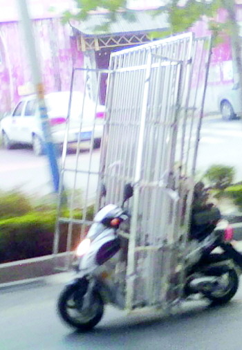 自述:一辆载着防盗网的摩托车飞速疾驰。