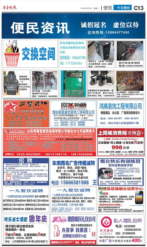 第J13版:今日烟台·便民