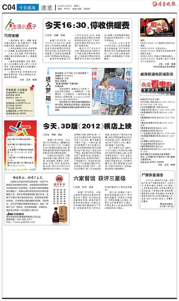 第W04版:今日威海·速览