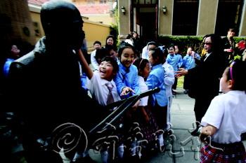 3日,北京路小学在骆驼祥子博物馆举办2013年清明诗会暨市南区“我们的节日——清明”经典诗文诵读活动,学生们通过讲述身边的亲情故事和吟诗缅怀老舍先生。