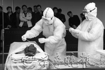 本报4月16日讯(记者 张牟幸子 通讯员 王丹) 16日下午,由滨州市卫生局组织的全市人感染H7N9禽流感救治培训在滨州市人民医院举行,市疾控中心主要负责人员及各县区卫生系统工作人员全部参加。培训会上还进行了H7N9禽流感救治演练。 在培训会上,滨医附院相关医务人员介绍,根据国家规定,各级各类医疗机构发现符合检测定义的病例后,必须在24小时内按不明原因肺炎进行网络直报,符合疑似或确诊病例标准的应当在2小时内进行网络直报。“滨州市首例人感染H7N9禽流感病例由省卫生厅组织进行实验室复核,并由省级专家组会诊和确认,之后的续发病例由滨州市卫生局组织实际专家组会诊和确认。”滨州市卫生局相关负责人也表示,在救治人感染H7N9病例时,医护人员首先要做好自我防护,“全市各个医院分诊台前至少要有两名医护人员,医护人员至少要做到一级防护措施,对不明原因发热和咳嗽的患者要正确引导及时就诊,不要让患者单独去就诊。” 随后,滨州市人民医院感染科医务人员在培训现场进行了人感染H7N9禽流感演练。在演练中,医务人员要穿戴防护服、一次性隔离衣及一次性手套等,经过近十道程序才能进入污染区接触患者,在为患者治疗完成后,至少要消毒洗手八次才能由污染区进入清洁区。 记者在现场看到,防护服及隔离衣全部为不透气材质,一次性手套和鞋套都要佩戴两层。相关工作人员表示,这只是初步的一个救治演练,还需要更多专家来完善救治过程,保证患者及医务人员不再感染。