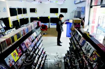 ▲张店西五路一家传统音像店正在转型,开始卖电视等电子产品。