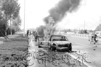 | 司机眼看着大火“吞噬”爱车 |