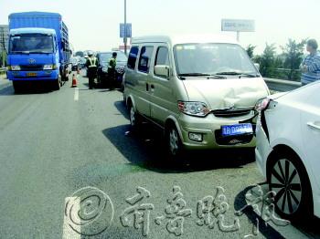 5月1日10时40分,一辆“奔驰350SUV”车沿青银高速由东向西行驶到228KM+600M处时,与其前面的面包车发生追尾。面包车又顶上了前面的小轿车,导致三辆车连环相撞。