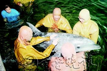 5月9日23时许,从日本购进的3头宽吻海豚抵达荣成西霞口野生动物园。宽吻海豚又叫“微笑海豚”,是非常聪明的动物,比如转呼啦圈这个项目,只需1个月的训练即可掌握。 负责运送海豚的轮船自日本下关港起航,经过28个小时的海上颠簸,顺利抵达青岛港。海豚被安放在一个水箱中的担架上,上半身露在水面之上,这是为了防止海豚呛水造成窒息。从日本到青岛的途中,随行工作人员不断将水淋在海豚背上,以防止其脱水。此外,海豚身上还涂抹了一层凡士林,并包裹了一层纱布,这样既能保持海豚皮肤的滋润,还可阻挡空气中的细菌和皮肤接触。当天17时30分,3头海豚从青岛港出发,驶往西霞口野生动物园。 这个周日是中国旅游日,来西霞口游玩的游客可领略这3头“微笑海豚”的风采。据了解,5月19日当天,所有人群均可享受威海西霞口景区门票优惠:神雕山野生动物园门票近6折,成山头和摩天岭5折。 (文考)