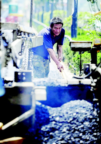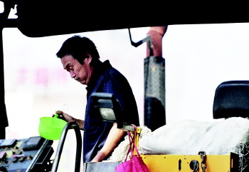 据了解,由于和平路修路,为了缓解周边道路的交通压力,他们必须在当日傍晚时分铺设完第二层沥青,完成该路段的临时通车。他们脚下的沥青温度高达100℃~140℃,踩在上面时间长了就烫得直跺脚,而他们的布鞋底上沾满了厚厚的沥青,算是暂时“隔热”了。工人们从早上7点开始工作,中午只休息了一小时。一天中最热的时候,他们依然奋战在炙烤的路面上。 本报记者 王媛 摄影报道