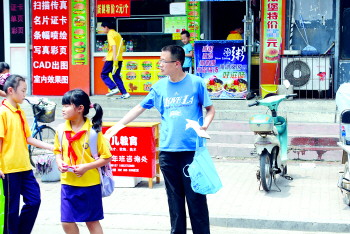 对于宣传单,小学生们大多并不愿接。 晋森 摄