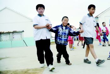 在学校里,看见刘学成上厕所,同学们会跟着“护送”(资料片)。 记者 李泊静 摄