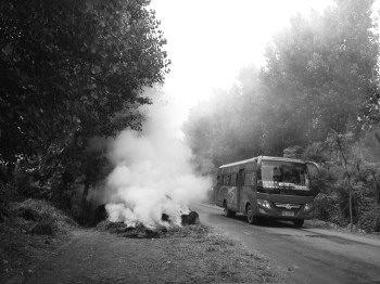 路上浓烟