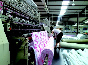 位于阳信县经济开发区的阳信利涛工艺有限公司成立于2000年,最初主要经营抽纱制品,通过与青岛一家外贸公司合作,将产品销往国外。由于纯手工制作的工艺品费时费力,规模发展受到制约。2008年前后,公司负责人袁立涛多方考察后,发现绗缝技术在滨州工艺品中应用不多,利用这个商机,公司2009年新上绗缝家具饰品生产线,购进高端电脑有梭绗缝机及配套设备,把传统手钩工艺和高端电子设备相结合,采用勾、贴、镶、绗等工艺流程,生产高档太空被、空调被、床盖饰品等饰品。由原先的传统手钩工艺转变为传统手钩工艺和高端电子设备相结合,成功实现了转型。