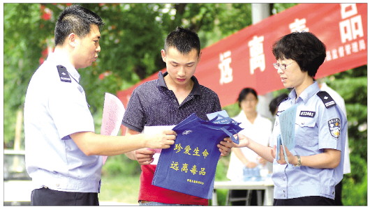 药品也会变毒品 6月26日是国际禁毒日即国际反毒品日。莱芜市禁毒办联合莱芜市公安局、莱芜市食品药品监督管理局在莱城大润发超市、馨百、银座超市、钢城、开发区、张家洼分别设立宣传点,开展“扫毒害,保平安”专项行动宣传。莱芜市食药局一位工作人员现场介绍,一些药品会让人产生依赖,如果利用不合理就会产生毒瘾,所以一定要合理用药。 本报记者 王鸿光 见习记者 周慧杰 摄影报道