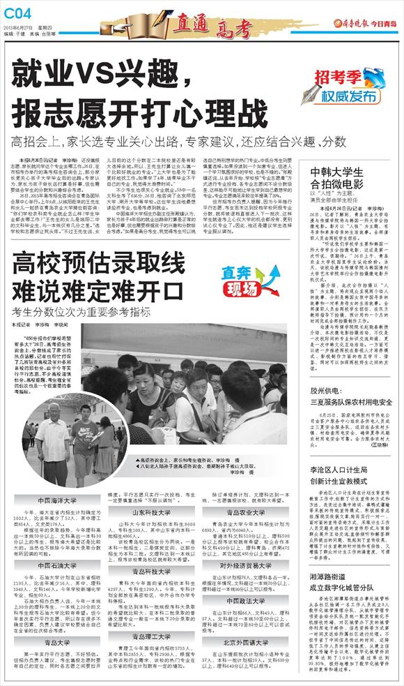 第Q04版:今日青岛·直通高考