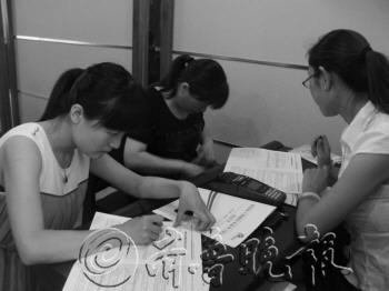 | ◥准妈妈现场签协议,给即将出生的孩子增加一份保险。
