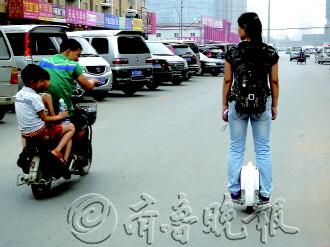 时间:2013年6月29日 自述:一女孩站在独轮电动车上,行驶在街头,引来不少路人观看。点评:别人坐着,她站着,好时尚!