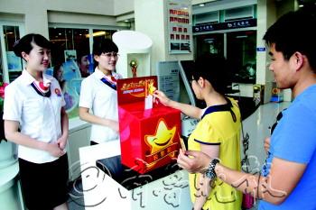 | 在营业大厅,市民对“走进交行,感受温馨”活动进行满意度投票。 |