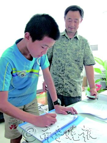 | 7月11日,一名小学生和家长一起来报名参加小报童活动。 本报记者李军 摄 |