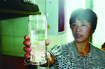 | 本报《健康专刊》发起“寻找健康好水行动”,为我市五户家庭赠送“九级净水器”,图为市民展示过滤后的直饮水。 |
