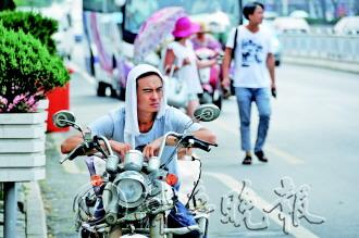 6日,市区最高气温达到34.9℃,不仅是今年入夏以来最高温,也是近4年来的最高气温。6日当天8时起,市区气温达到了30.9℃,至17时仍高达33.9℃。高温下,出行市民为避暑纷纷打伞、吃冷饮,图为市民将湿毛巾捂在头上取“凉”。未来几天内,最高气温都将在32℃以上。