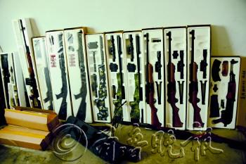| 11日,枣庄警方在一个玩具店查获大量仿真枪支。警方供图 |  | 临沂兰山警方在清查行动中将一名犯罪嫌疑人抓捕归案。警方供图 |