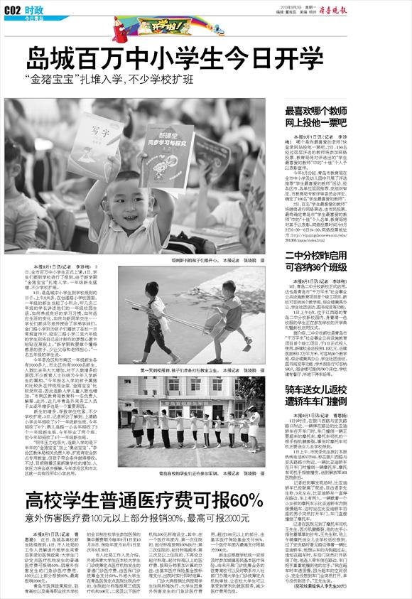 岛城百万中小学生今日开学