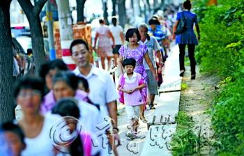 2日是开学日,在和平路上,虽然东西两头已经可以临时双向通车,但不少家长仍选择步行送孩子上学,既能环保健身,又能较好地掌握路上的时间。 本报记者 王媛 摄