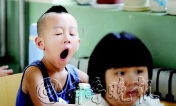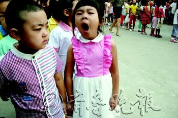 | 喜欢学习的新生在教室里自己看起了书。 本报记者 韩逸 摄 |  | |  | 课堂上,一位还没适应的孩子直打哈欠。 本报记者 李泊静 摄 |  | 孩子们在学校里马上找到了新玩伴。 本报记者 韩逸 摄 |  | 看样子,小朋友困得不轻。 本报记者 李泊静 摄 |  | 小朋友在队列里打起了哈欠。 本报记者 韩逸 摄 |