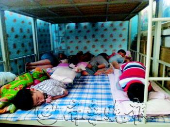 本报记者 李飞 张跃峰 张榕博 李钢 见习记者 李师胜 张群 收费 虽然价格高生意却很火 “孩子入学了,才得知学校没有小饭桌。”3日,济南市历下区某小学一年级学生家长杨先生告诉记者,学校表示新入学的学生都不能在学校吃小饭桌,这让他很犯愁。“私立的每月400多元,价格倒是其次,关键是不放心饭菜质量和卫生状况。” 记者从省城历下区多所小学了解到,目前学校虽然还有校内小饭桌,但仅限于高年级学生,近几年入校的学生都不能在校内吃。“学校目前只有五六年级可在校内吃小饭桌。”历下实验小学一老师说。而济南东方双语实验学校虽然校内有小饭桌,但限于小学阶段三至六年级学生和初中阶段的三年级学生。 多名接受采访的老师表示,早在2009年,济南市历下区教育局就下发通知,要求各中小学逐步取消小饭桌。主要是很多学校没有能力继续办小饭桌。记者从槐荫区、天桥区的多所学校了解到,现在学校仍有小饭桌,但大多都是配餐公司配餐。 近日,记者走访了省城的大明湖小学、山师附小、文东小学等学校附近的小饭桌,发现新学期普遍上涨了价格。“以前是280元一月,现在是300元一月。”大明湖小学附近亮点小饭桌负责人表示。山师附小附近的金育宝贝小饭桌负责人说,“现在450元每个月,晚上加餐、有专门老师辅导,另加300元。”而东方双语实验学校附近小饭桌均在400-500元之间。 学校小饭桌价格则便宜得多。东方双语实验学校小饭桌的价格小学生每月220元左右,初中生250元左右。而济南市师范路小学小饭桌价格低年级150元左右,高年级180元。 住宿 有的孩子睡通铺有的打地铺 3日中午12时30分,东方双语实验学校的餐厅内学生陆续吃完饭离去,到宿舍内午睡。记者看到,宿舍里床铺为上下床,除了学生,执勤的老师也在里面休息。 随后,记者探访了学校附近小区内的多家私立小饭桌。这些小饭桌都在民宅内,一般为两室一厅或三室一厅。客厅用来吃饭,其余房间分别供男生和女生休息。在一家小饭桌,记者看到十几平方米的房间内,床铺分上中下三层,每一层可以供5名学生休息。另外,阳台上也放上了床。而客厅内,也有几名学生打地铺休息。 大明湖小学附近的亮点小饭桌内,其中一个午休的房间内摆着铁制的三层床,东侧共有6张床18个孩子,东西方向躺着;西侧是2张床6个孩子,南北方向躺着。中间过道刚好能容纳一个成年人经过。 尽管多家小饭桌的负责人都表示,住宿都是单人单床,餐具也是专人专用,每日两次消毒。但记者注意到,这些校外小饭桌的空间小,尤其是午休的房间相对也比较拥挤。由于防火意识差,存在一定的消防安全隐患。 在莱芜的花园学校周围一“小饭桌”的学生住宿房间位于三楼,住宿房间里的床是“小饭桌”工作人员自己搭的简易床板,学生们自己带的枕头一个挨一个摆放着。“我们今年总共就招40个人,现在已经招了31个了。”工作人员说。另一家“小饭桌”的住宿房间在二楼,床同样是工作人员自己搭的,围着房间摆了一圈。床与床之间没有明显的间隔,记者在住宿房间和上下楼的地方没有看到逃生标志。
