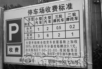 | 新世界花园小区对于部分不办证的车辆实行按次收费,收费标准如图。 见习记者 田甜 摄 |
