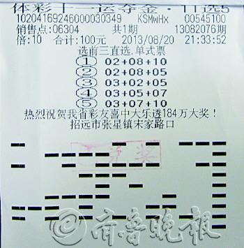 家住烟台招远的小刘近期真是彩运上佳,平时非常喜欢购买的顶呱刮为他频送小奖,就连第一次购买的11选5也给他送来了奖金11700元。 8月20日晚上,小刘与同事聚餐到很晚,回家经过招远06304号体彩站时,进去刮了几张即开票,并跟站长攀谈起来。小刘说他喜欢即开票的原因,是因为它即刮即中,能随时体验中奖乐趣。听到这里,站长为小刘介绍了十分钟就开奖一期的“11选5”。小刘听了之后很有兴趣,随即选了几组数字,打了前三直选,没想到竟一举命中大奖,中了10注前三直选,获奖11700元! 领奖后,小刘说:“11选5真是魅力无限,我刚上手就赢得大奖,很兴奋,今后还要尝试11选5的其他玩法,希望能多多中奖,多中大奖!” (于丹)