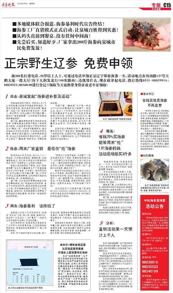 正宗野生辽参 免费申领